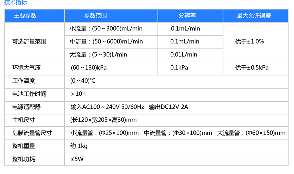 主機(jī)可配置多種規(guī)格皂膜管適用不同流量;